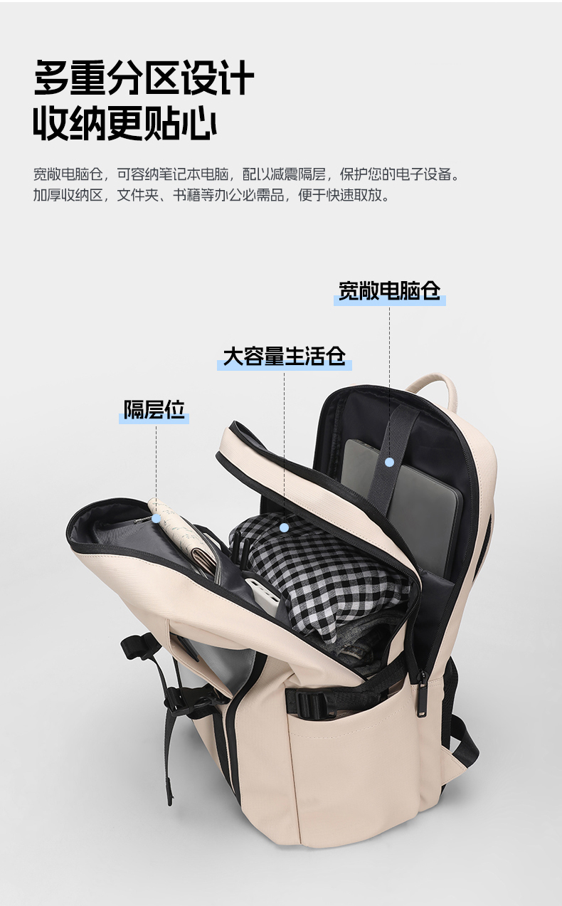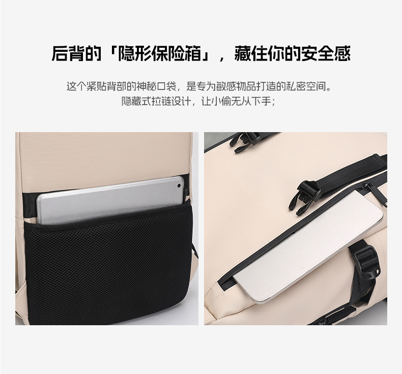 2.内部暗拉链袋,电脑隔层