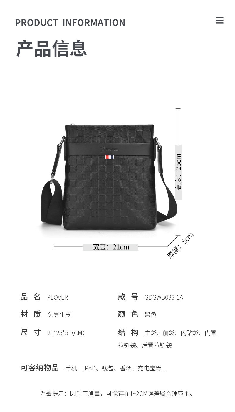 PLOVER香港啄木鸟压花方格花样单肩包斜跨包日字包GDGWB038-1A