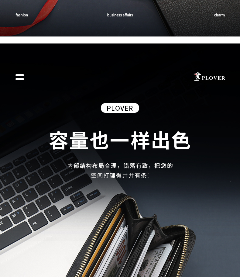 PLOVER香港啄木鸟拉链钱包真皮小手包 GD6919-A