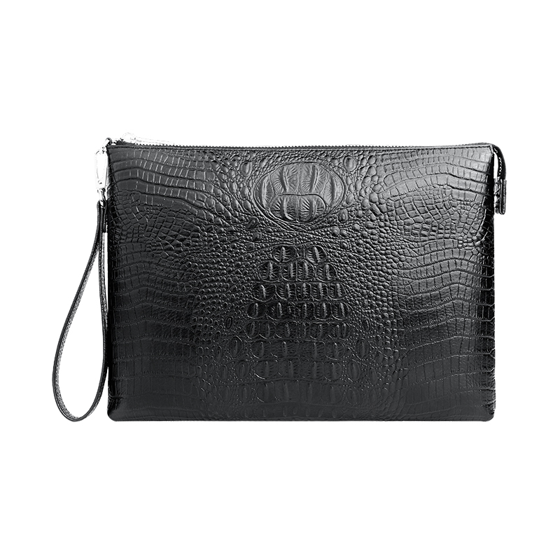 主面料采用头层牛皮压印鳄鱼纹路,大气的鳄鱼纹路凸显本产品的气质,可拆卸手腕带适合不同环境使用,内部双隔层,拉链暗格袋,加大内部空间,顺滑五金拉链,无处不体现本产品的品牌气质;