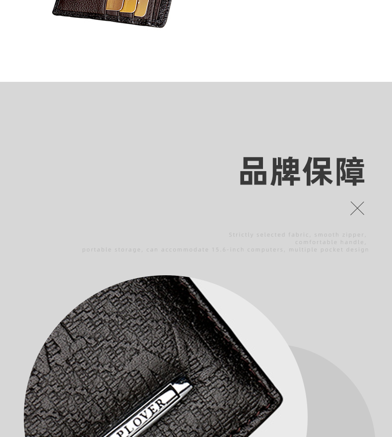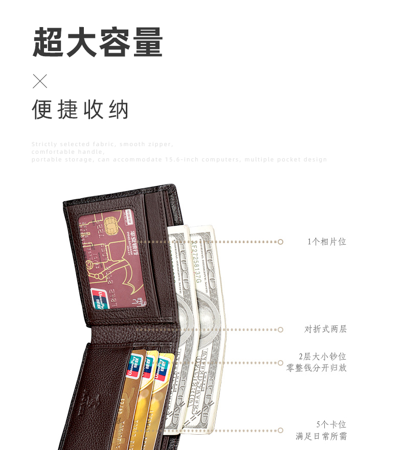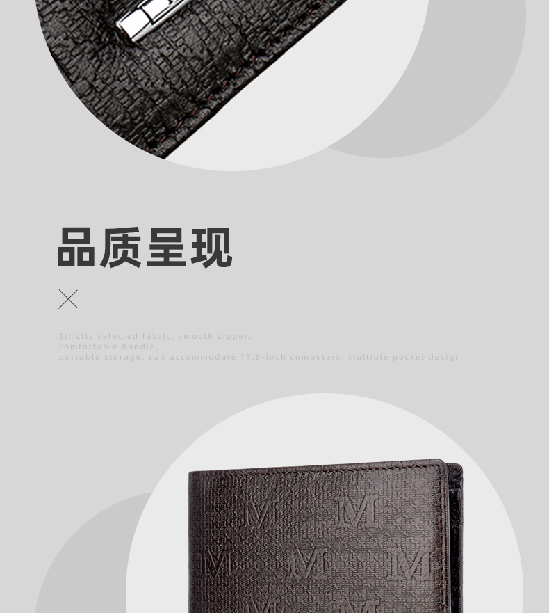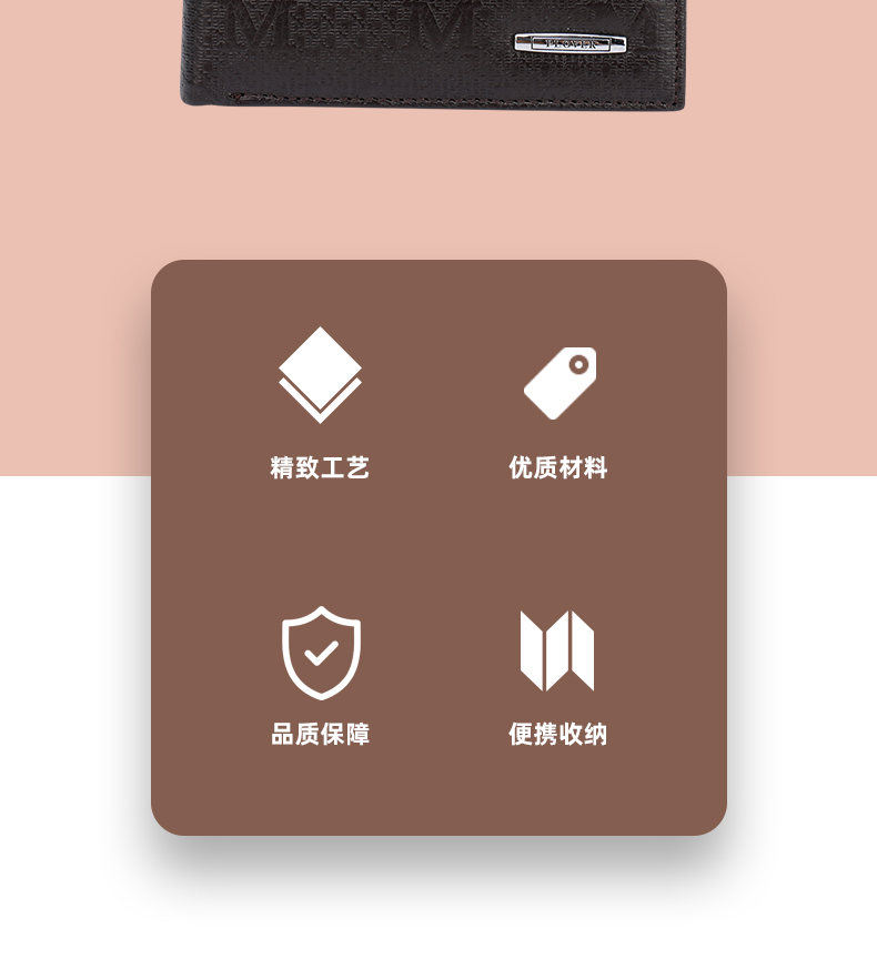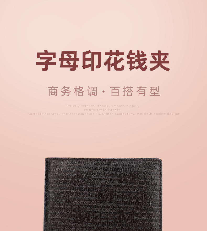 钱包采用特优级头层牛皮制作,压花设计,搭配靓丽品牌金属,压印品牌LOGO,工艺采用内车线工艺
