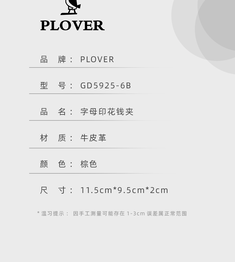 PLOVER香港啄木鸟横款收纳钱包M图案钱夹 GD5925-6B