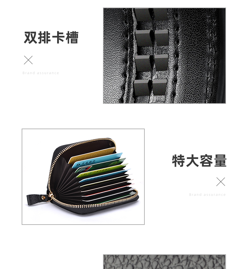卡包采用头层牛皮链条的咬合力十足,配合到位的车缝线,风琴卡位的设计,简约而不失优雅,带身使用二层牛皮,耐变形夹层保证皮带在使用中不易变形,封边采用车线加油边的工艺,带身尾部采用热压logo工艺