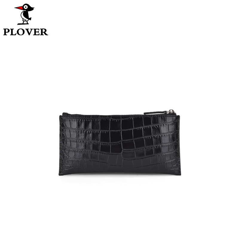 PLOVER香港啄木鸟头层牛皮鳄鱼纹拉链款钱包 GD5134