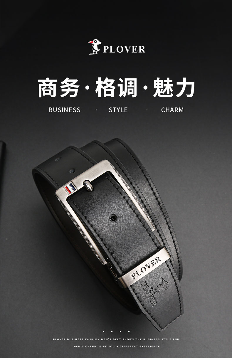 PLOVER香港啄木鸟男士真皮腰带针扣皮带GD28AK20-ZA-B1