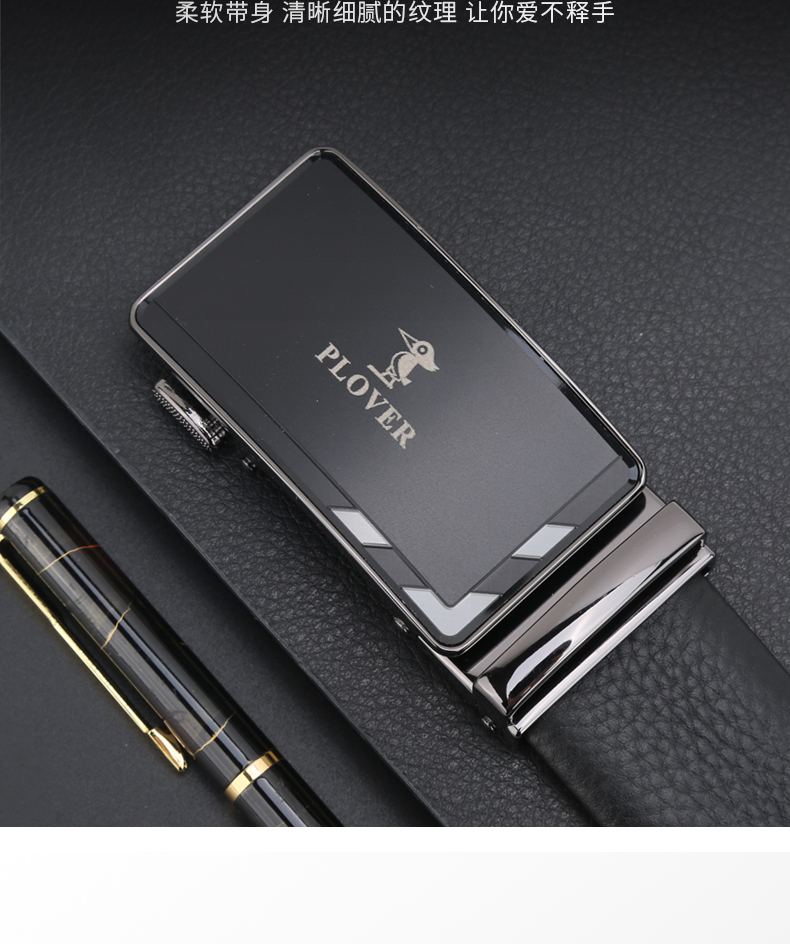 环环相扣,品质享受。扣头采用锌合金真空电镀工艺,以及亚克力磨砂片贴片,带身采用高品质头层牛皮打造,真皮实材,您值得拥有!