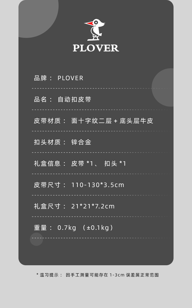 PLOVER香港啄木鸟自动扣真皮商务皮带GD00020-DA-G3
