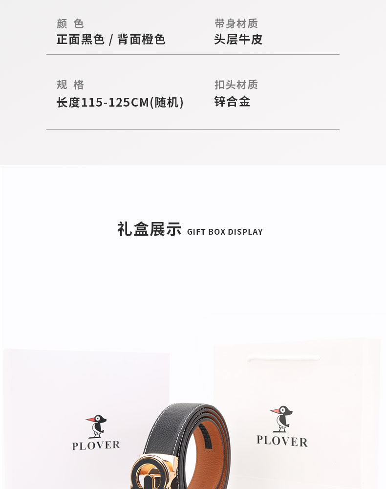PLOVER香港啄木鸟真皮腰带头层牛皮皮带GD24AK84-DA-B1