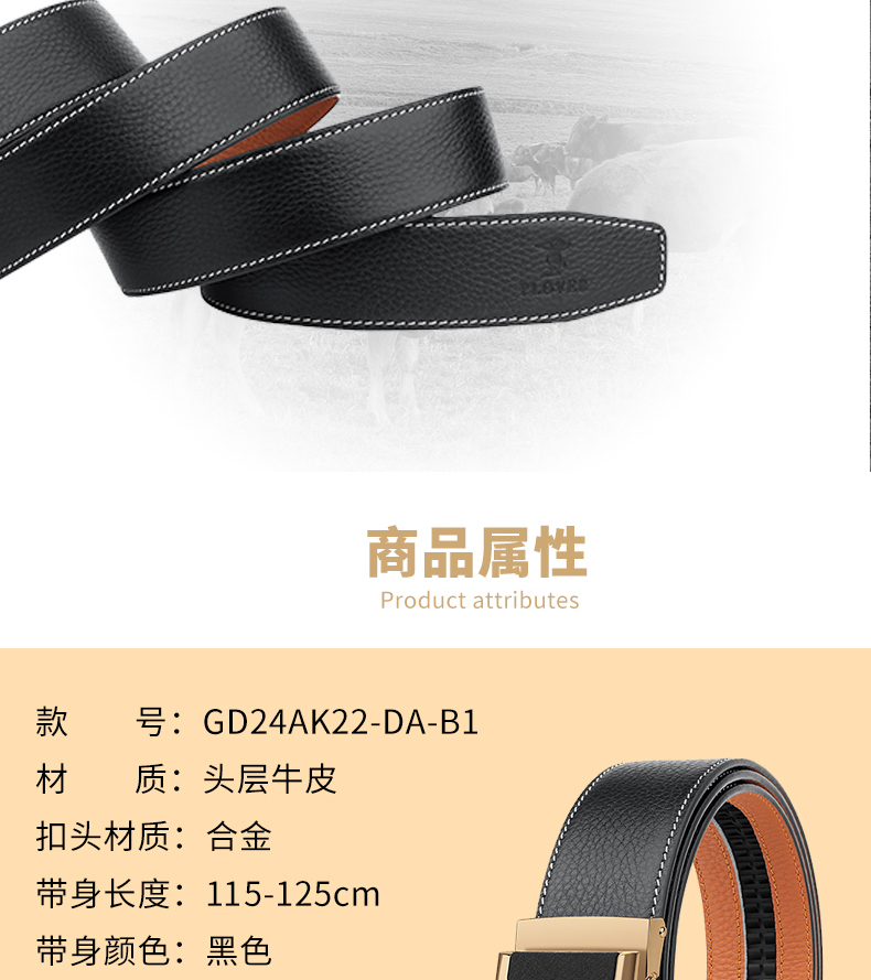 PLOVER香港啄木鸟真皮腰带头层牛皮皮带GD24AK22-DA-B1