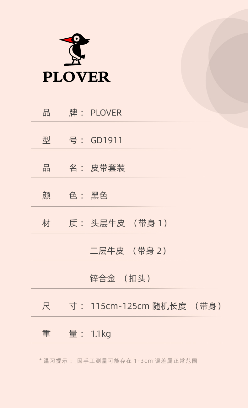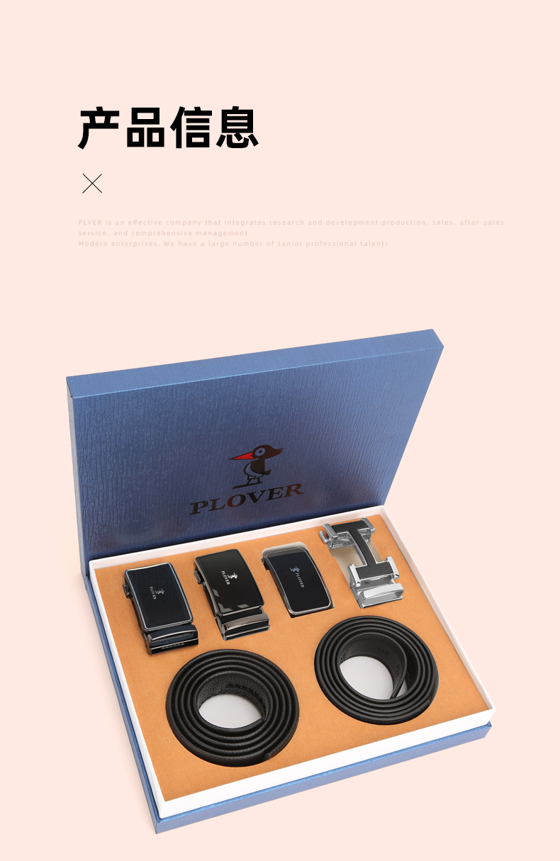 PLOVER香港啄木鸟头层皮带自动扣真皮腰带双扣皮带礼盒GD1911