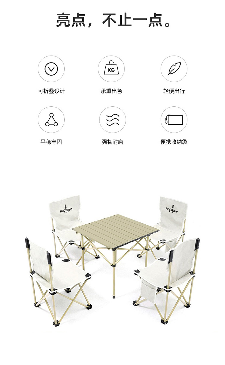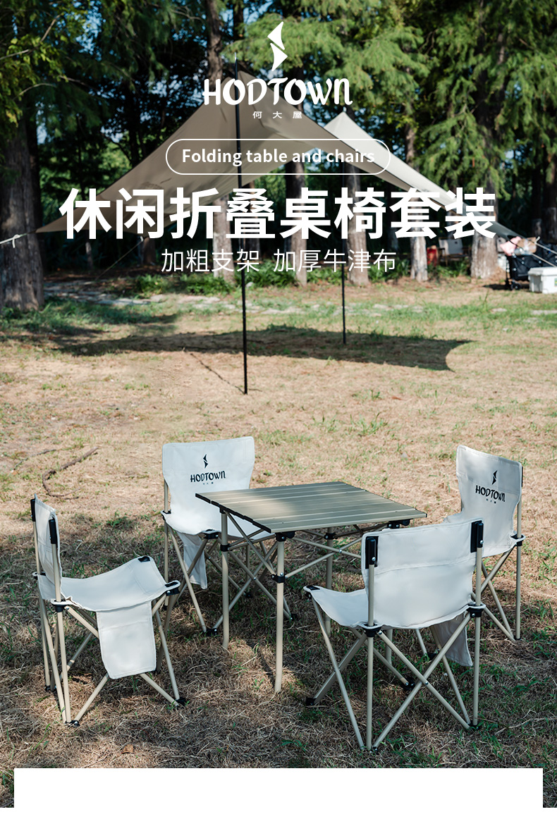 材质:铝合金桌面、铁管支架、双层600D牛津布椅面