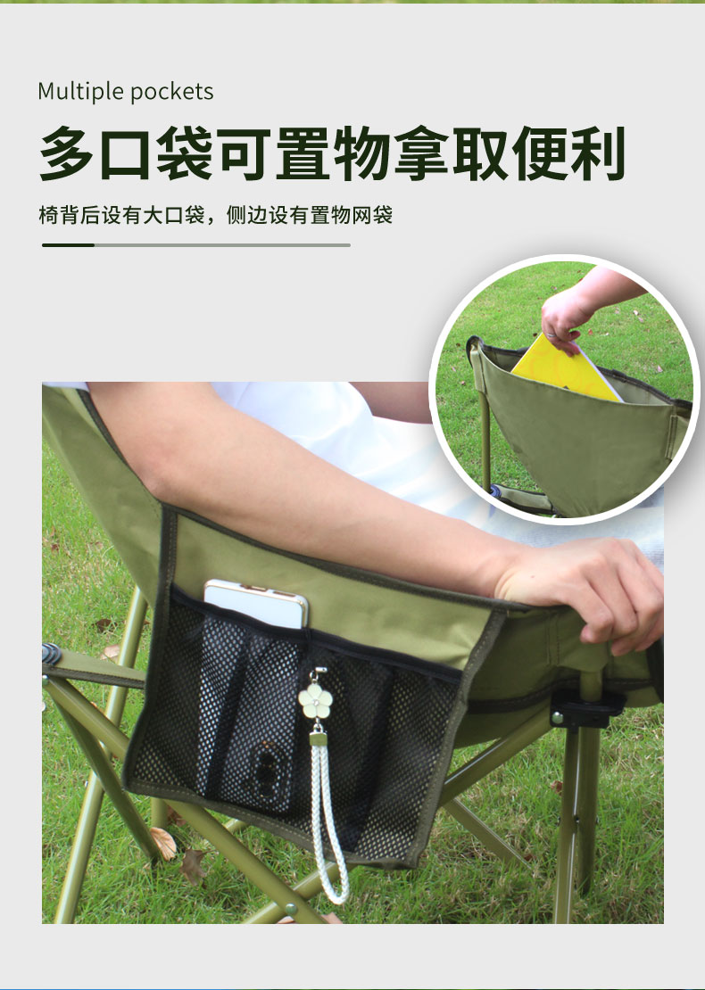 加厚600D牛津布材质,耐磨抗撕裂,椅子铁管支架,承重更出色。