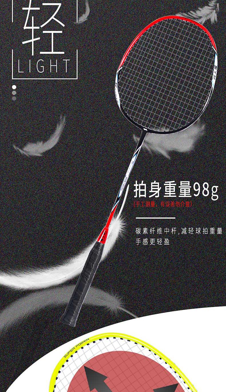 碳素纤维中杆,拍身仅重98g,手感更轻盈。