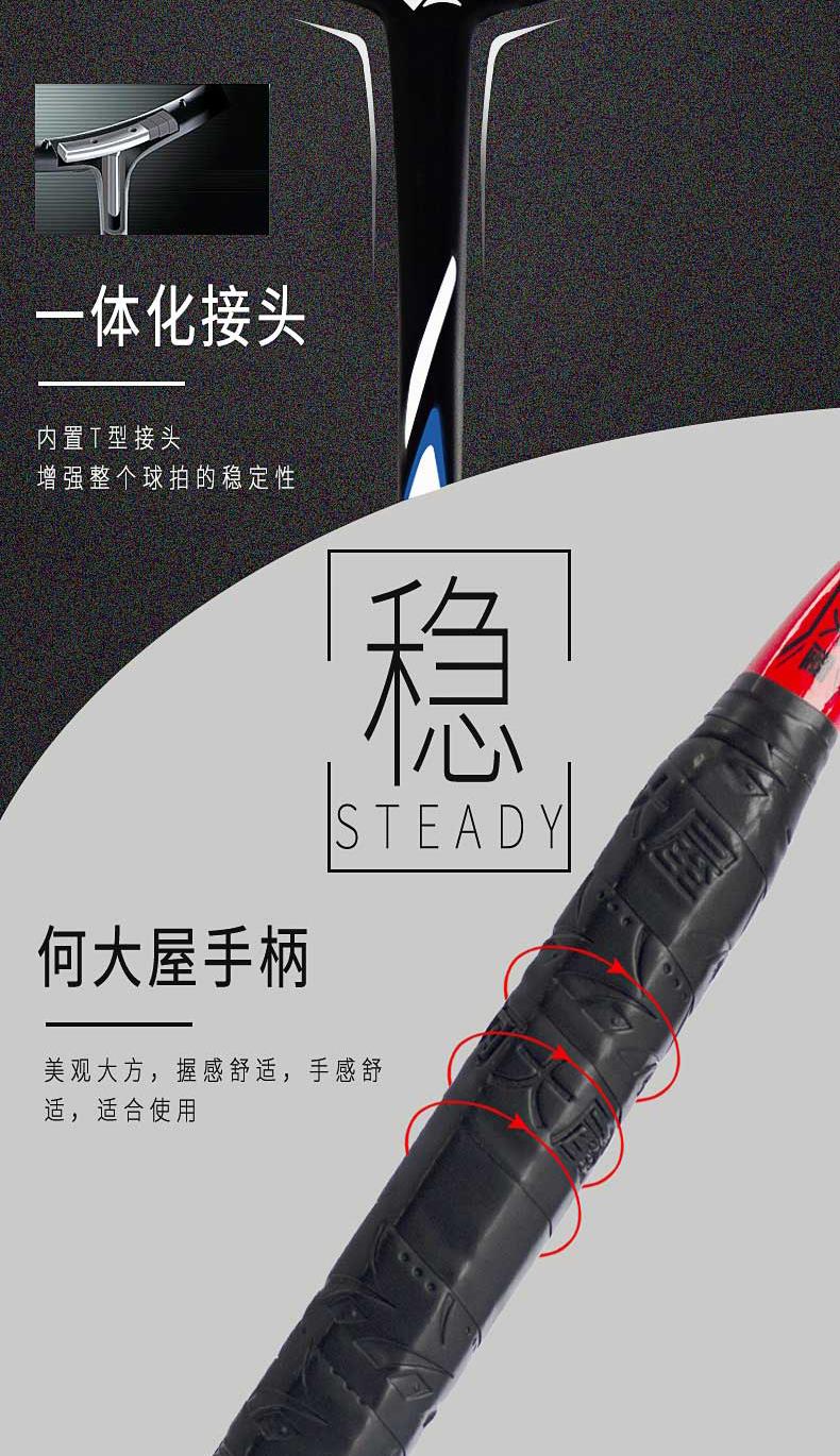 一体化接头,增强整个球拍稳定性。