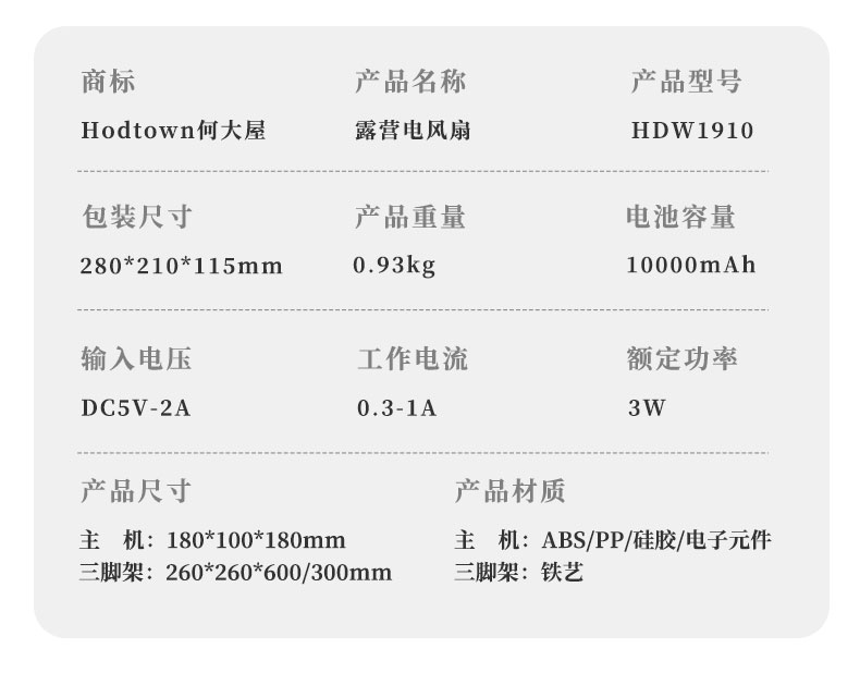 何大屋露营电风扇HDW1910