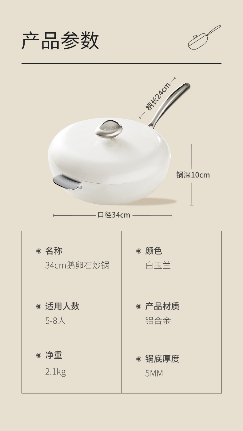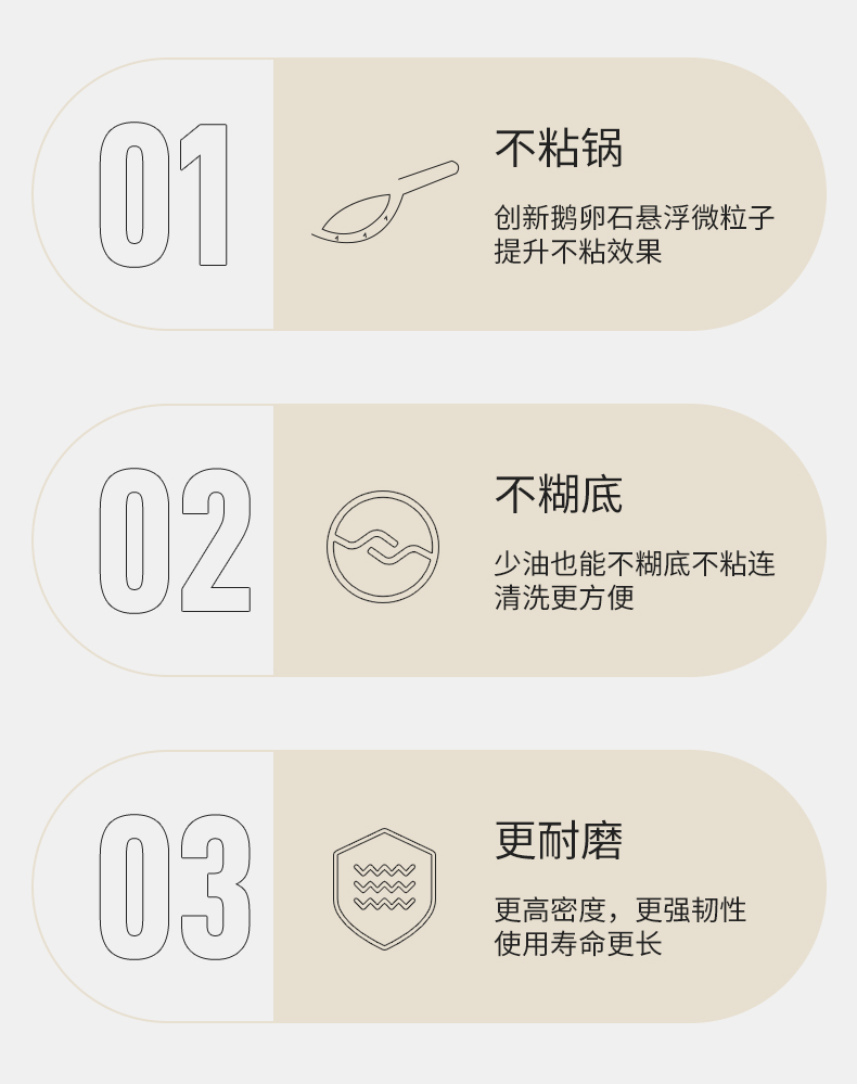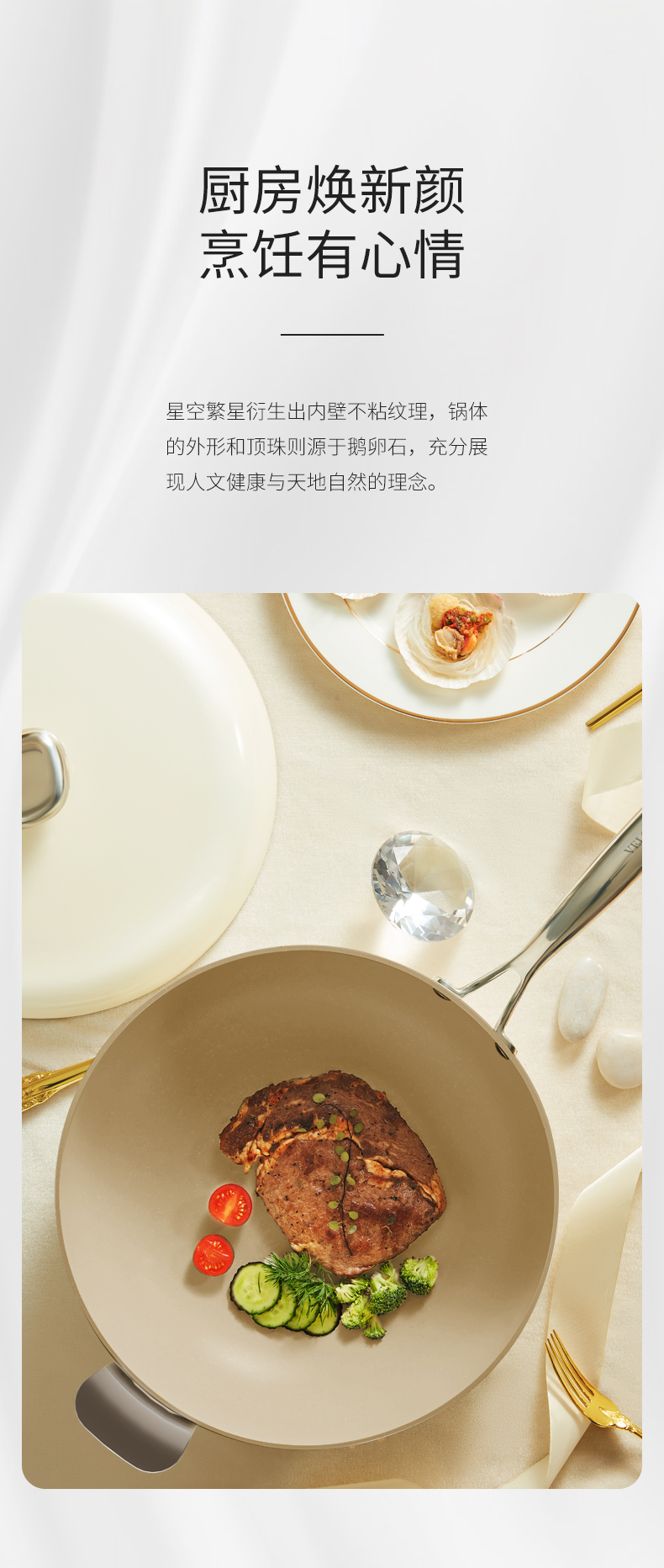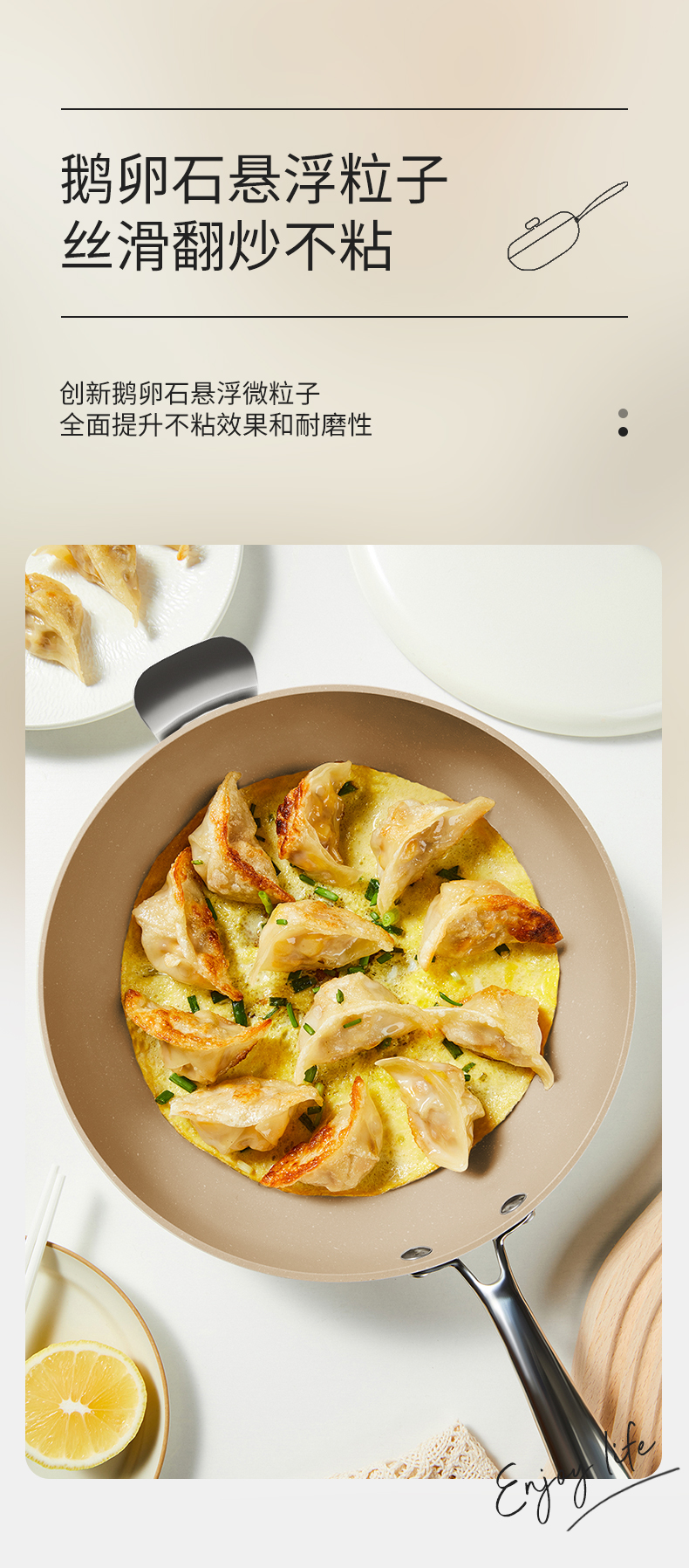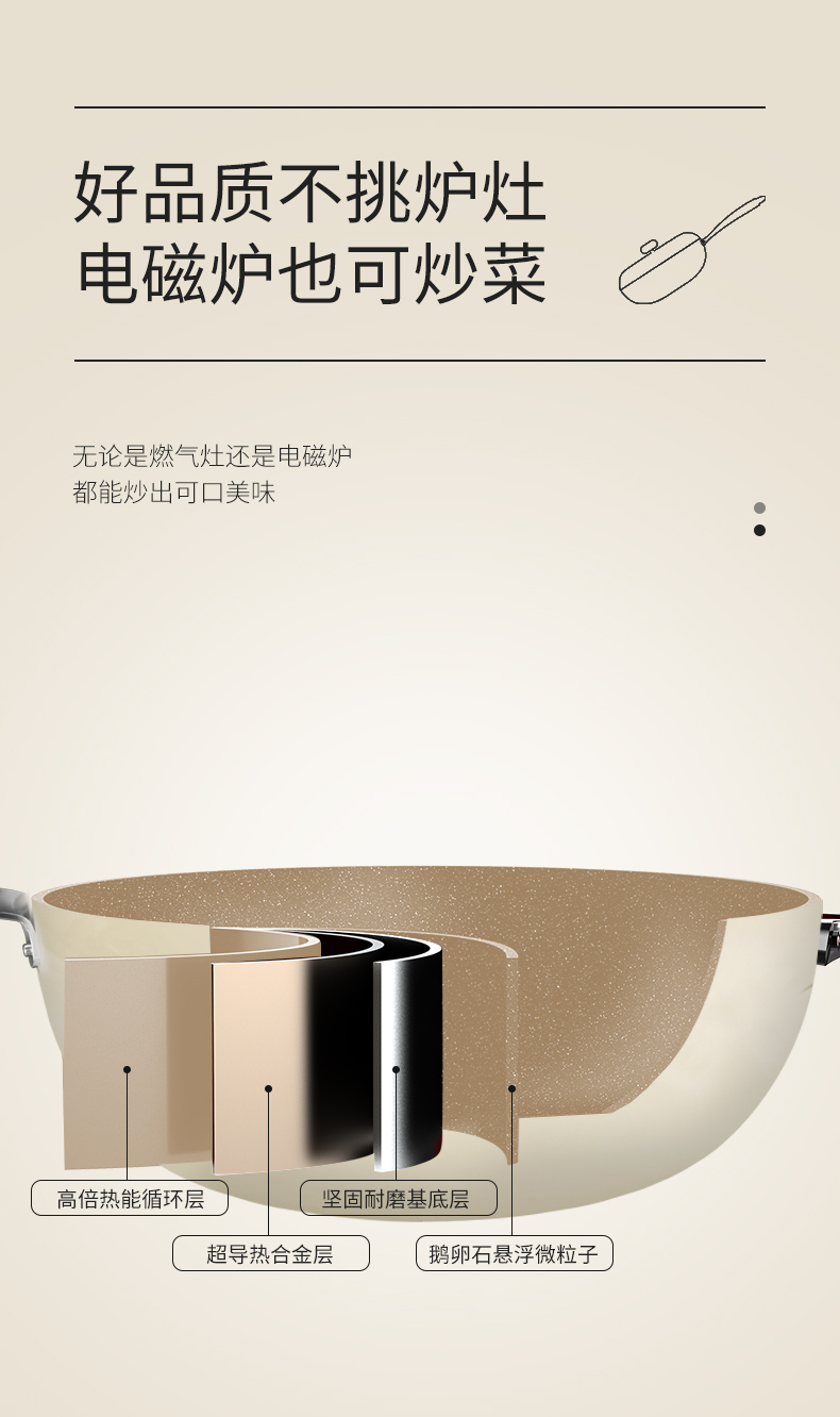 采用悬浮不粘技术,炒菜丝滑,内外不粘。