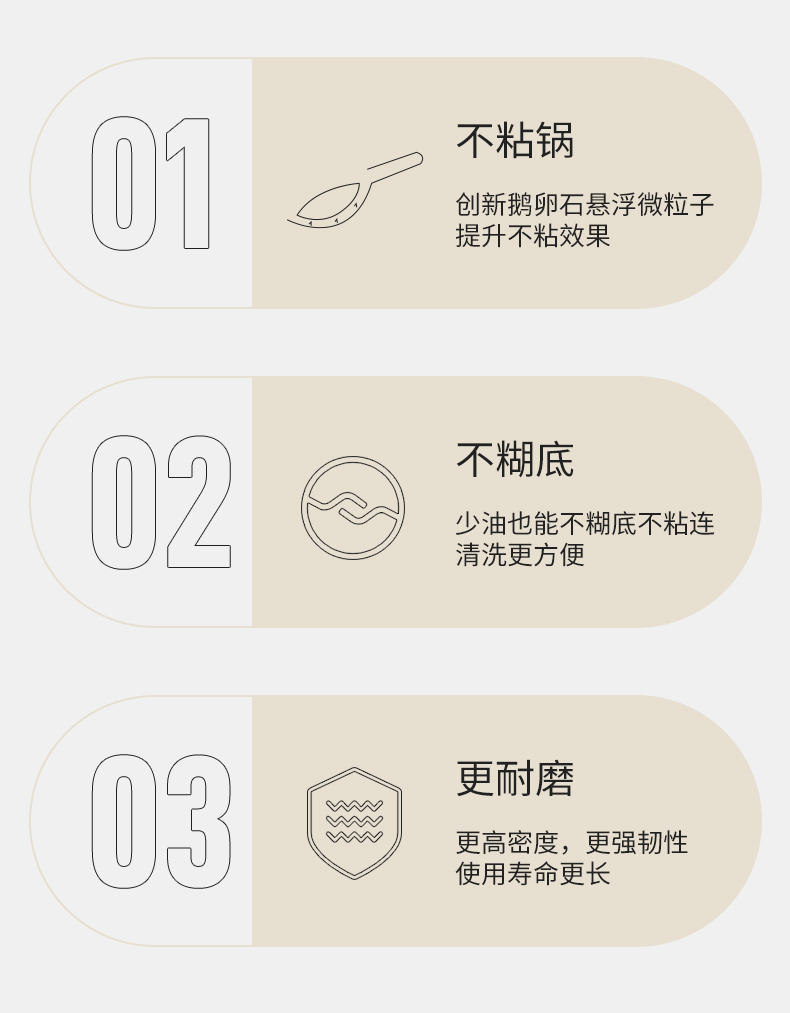 采用悬浮不粘技术,炒菜丝滑,丝毫不粘。