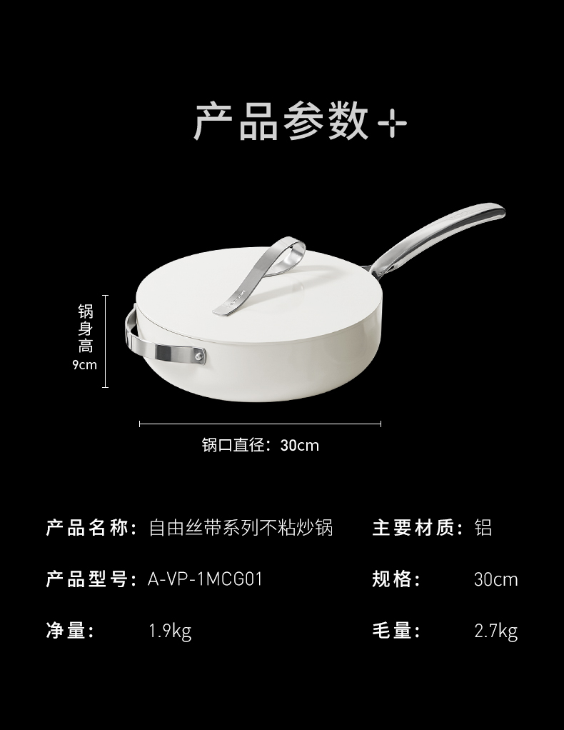Velosan温仑山自由丝带系列不粘炒锅30cm A-VP-1MCG01