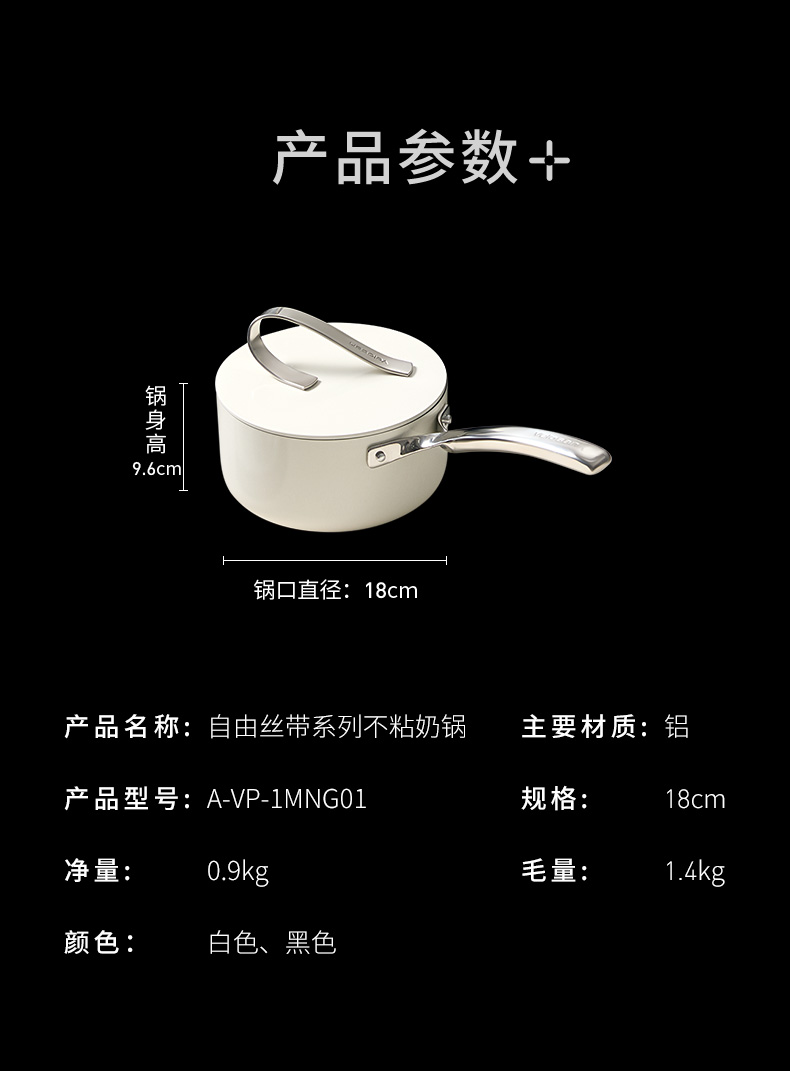 Velosan温仑山自由丝带系列不粘奶锅18cm A-VP-1MNG01