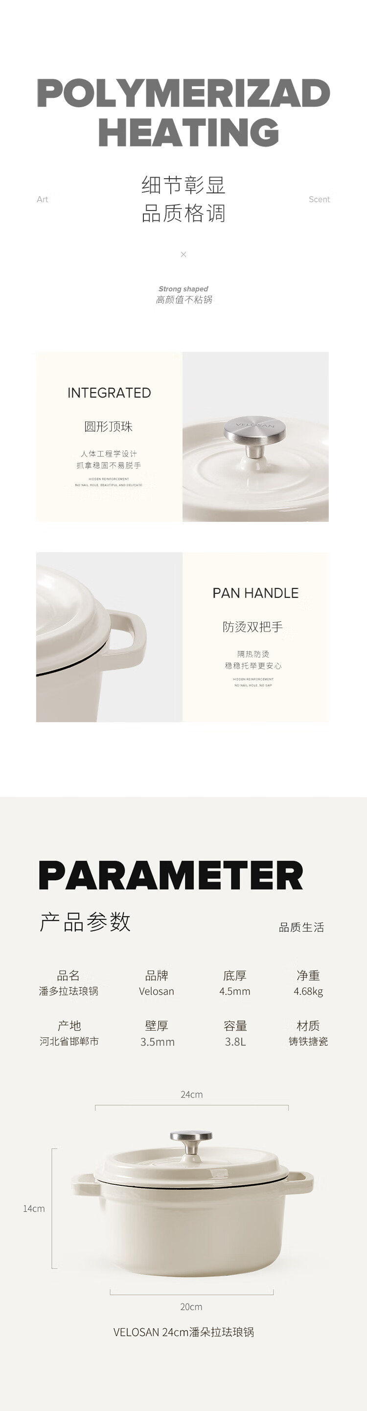 【材质】铸铁珐琅 【规格】24cm