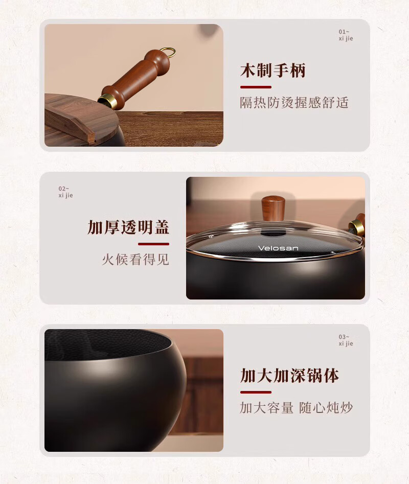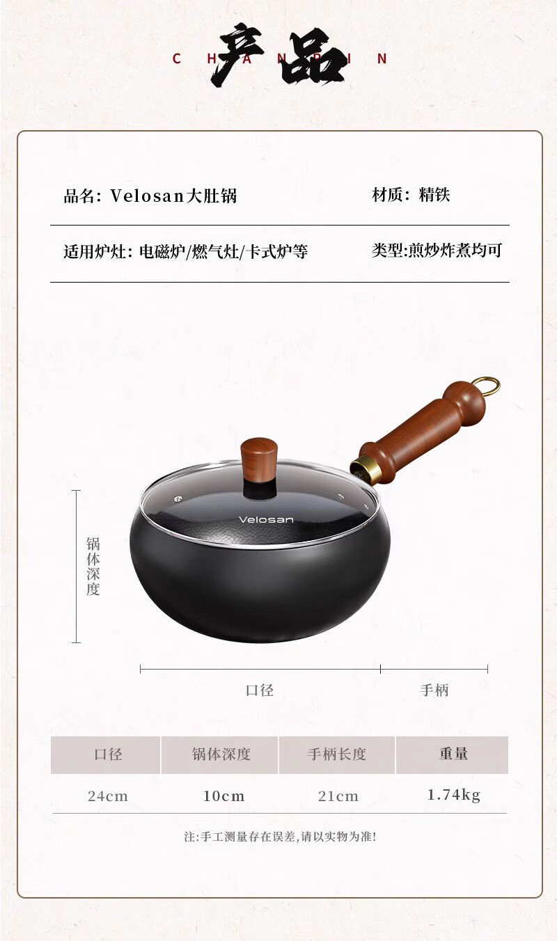 Velosan温仑山锻打大肚炒锅24cm VP-1FCG01