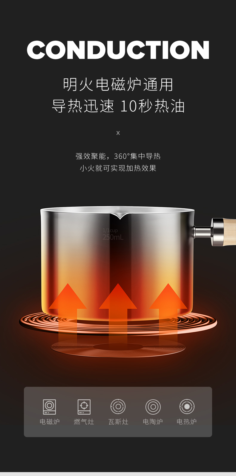 明火电磁炉通用,导热10秒热油。