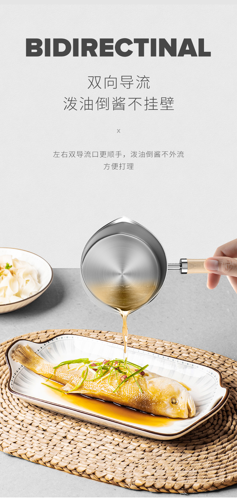 双导流口,泼油倒酱不挂壁;