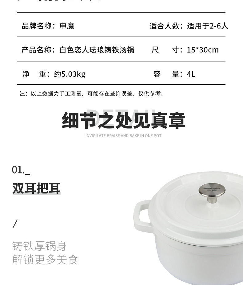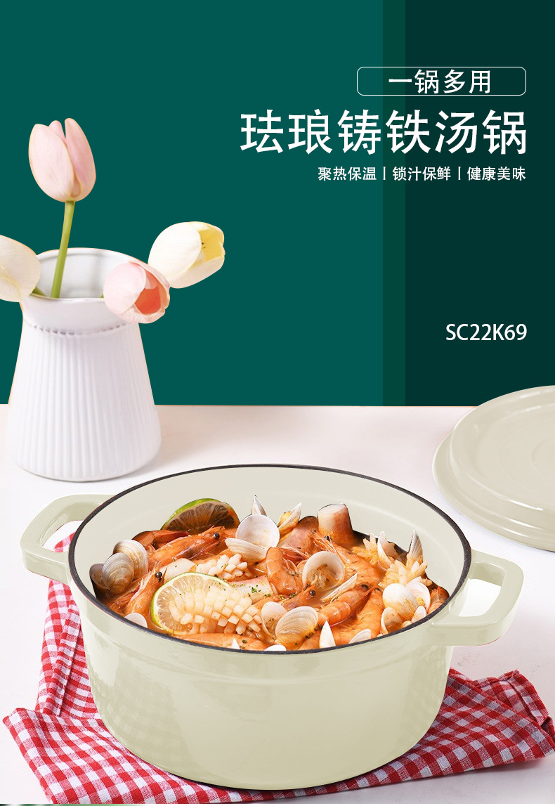 申魔白色恋人珐琅铸铁汤锅SC22K69