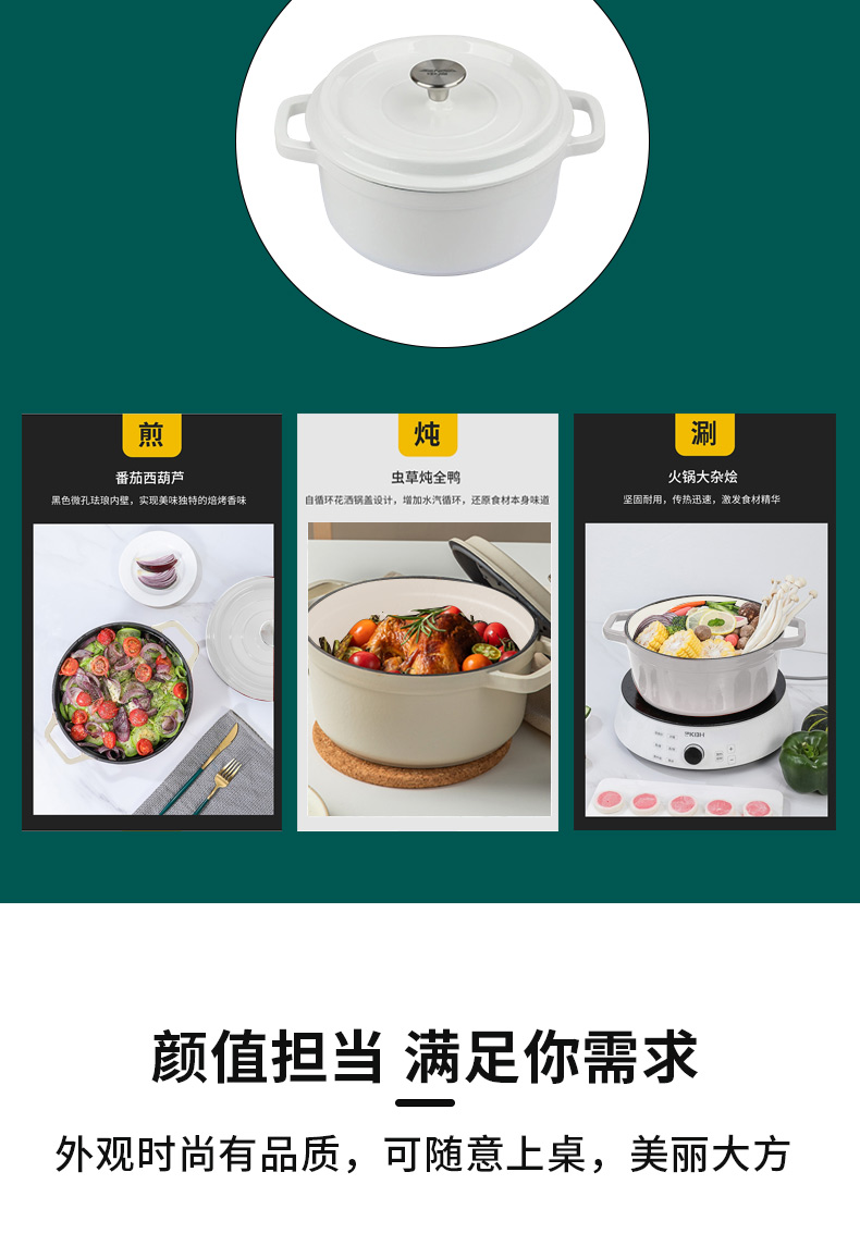 支持多种用法:煮、炖、煎、焖、炸。