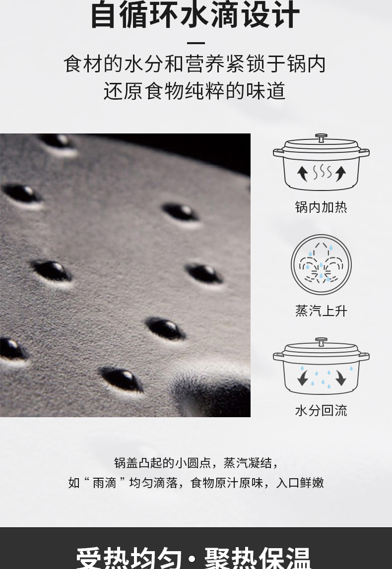 自循环水滴设计,锁住食材的水分和营养。