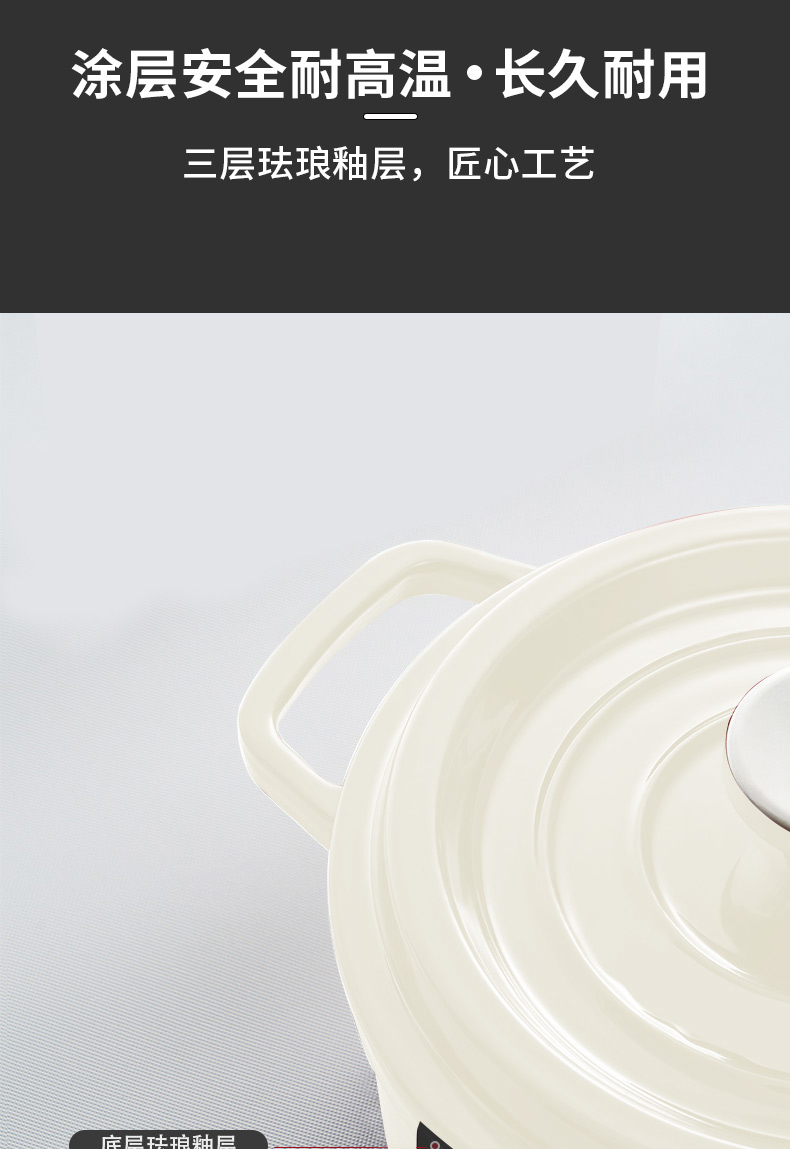 三层珐琅釉层,坚固耐用,光洁易清洗。
