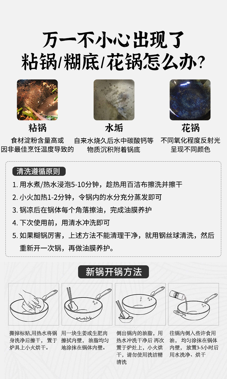 4、铁锅经久耐磨可以长期使用,无需定期更换: