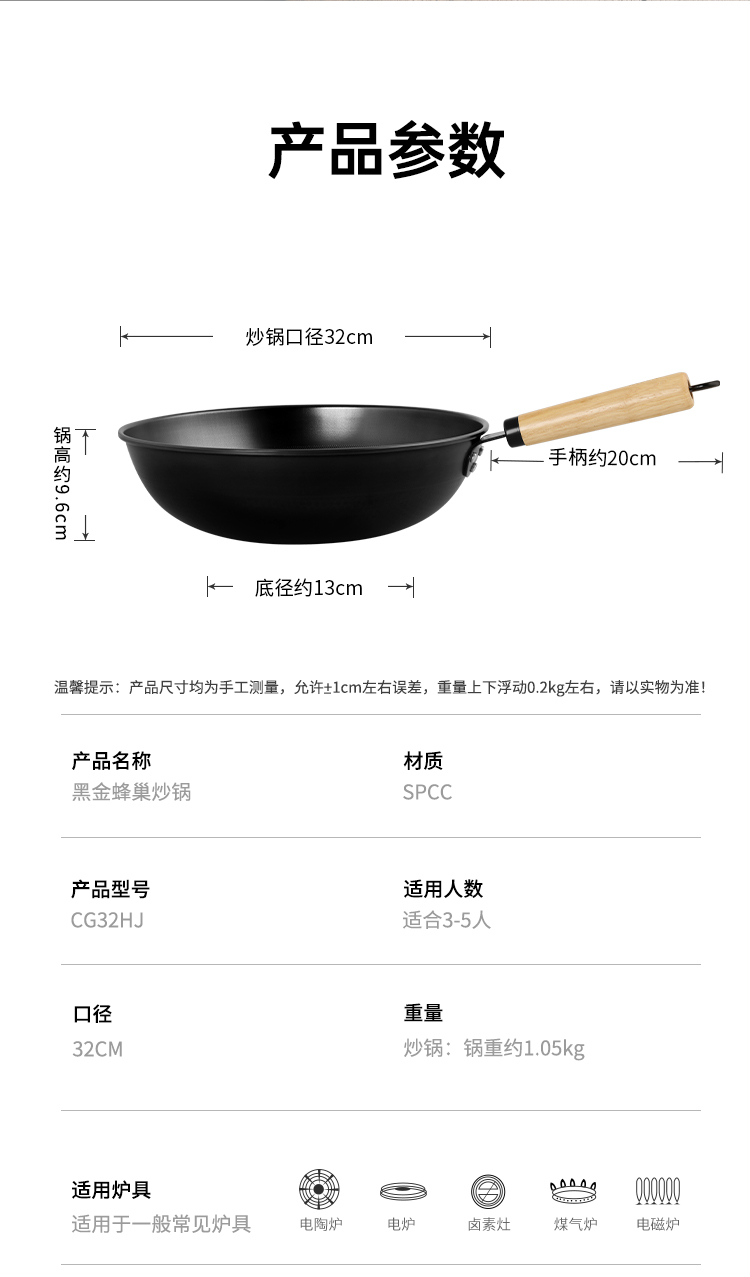 1、精铁锅\不挑灶\升温快黑金蜂巢炒锅铁铲任意炒,蜂巢纹路|健康0涂层|不挑食材。