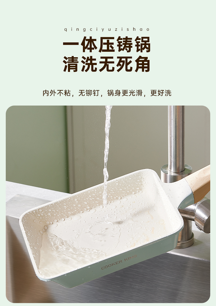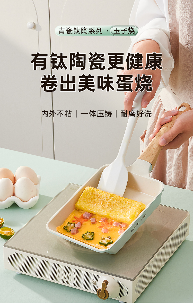 1、有钛陶瓷更健康卷出美味蛋烧,内外不粘一体压铸耐磨好洗。