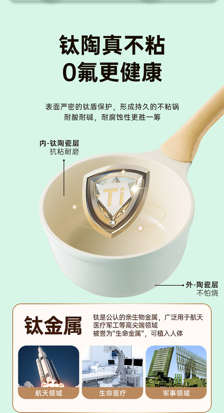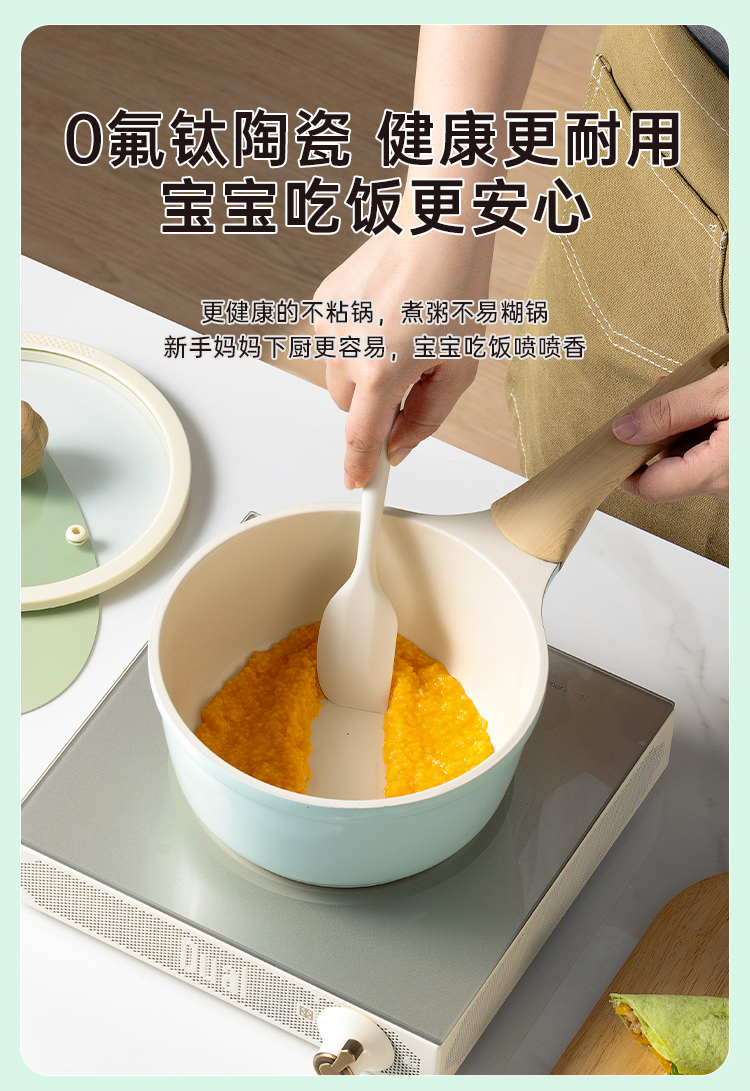 1、有钛陶瓷耐磨不粘健康的宝宝辅食锅。