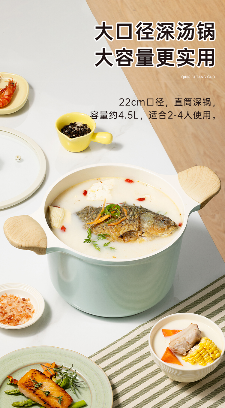 1、有钛陶瓷耐磨不粘健康兼具美观的汤锅,