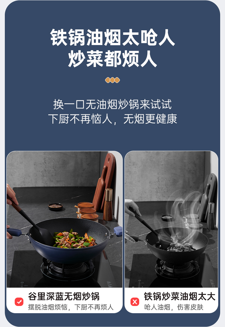 炊大皇谷里深蓝无油烟炒锅32cmSL32CG