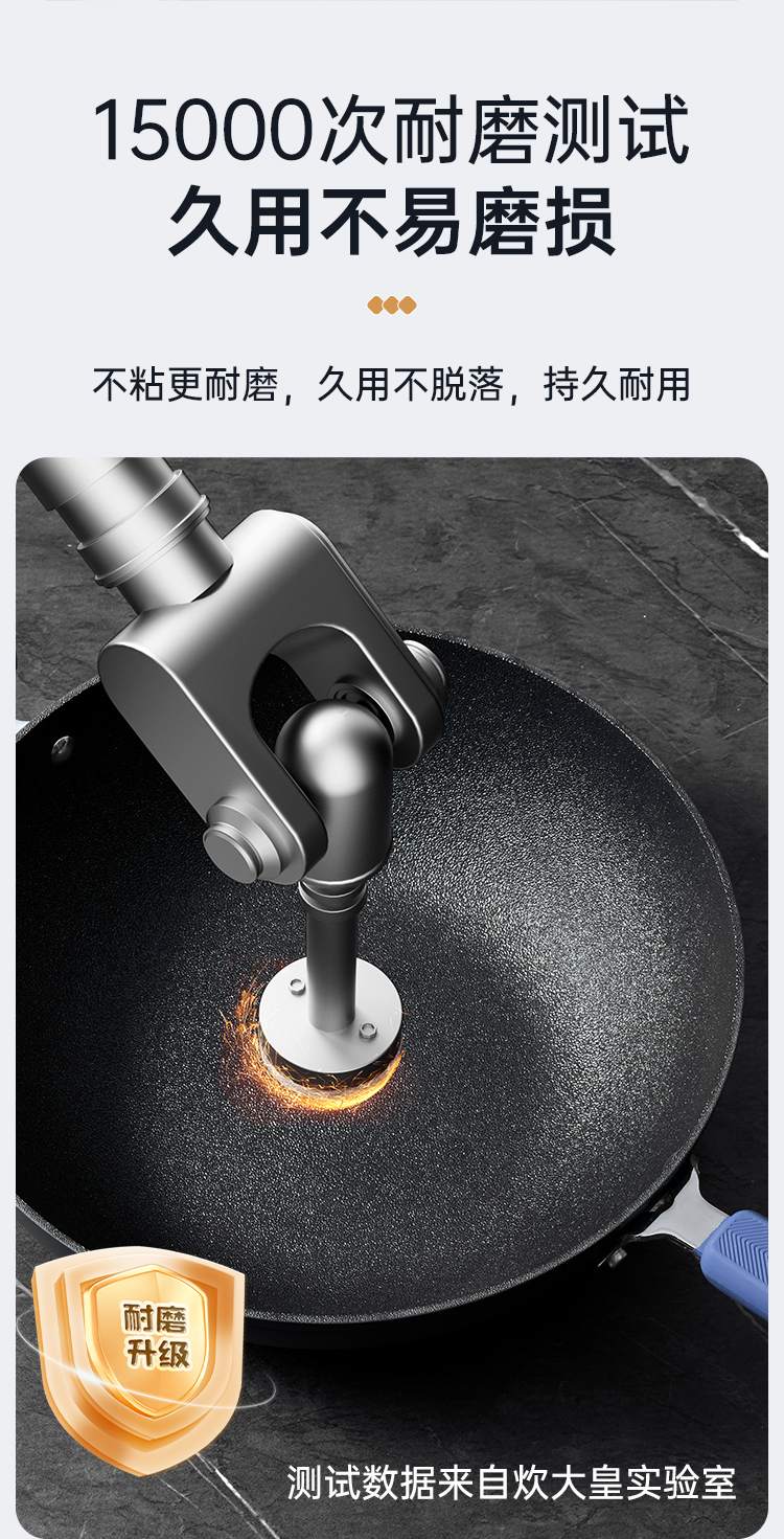 2、15000次耐磨测试久用不易磨损不粘更耐磨,久用不脱落,持久耐用