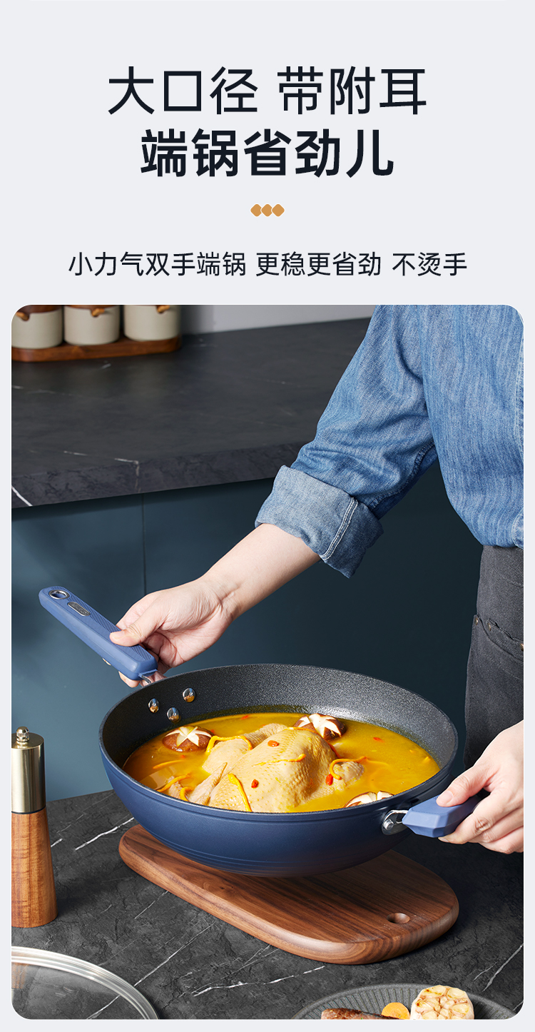 炊大皇谷里深蓝无油烟炒锅34cmSL34CG