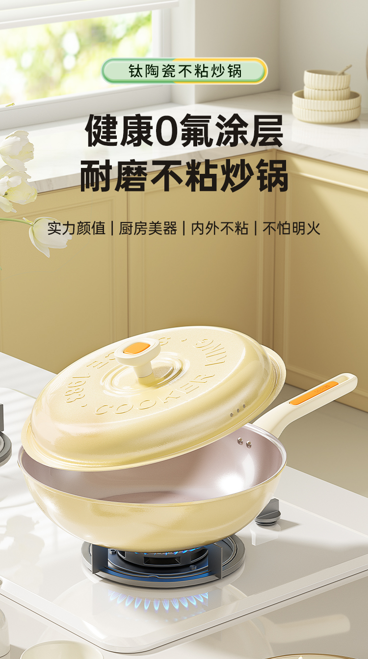 3、钛与瓷的结合是1+1>2的效果抗刮耐磨,持久不粘,更好清洗。