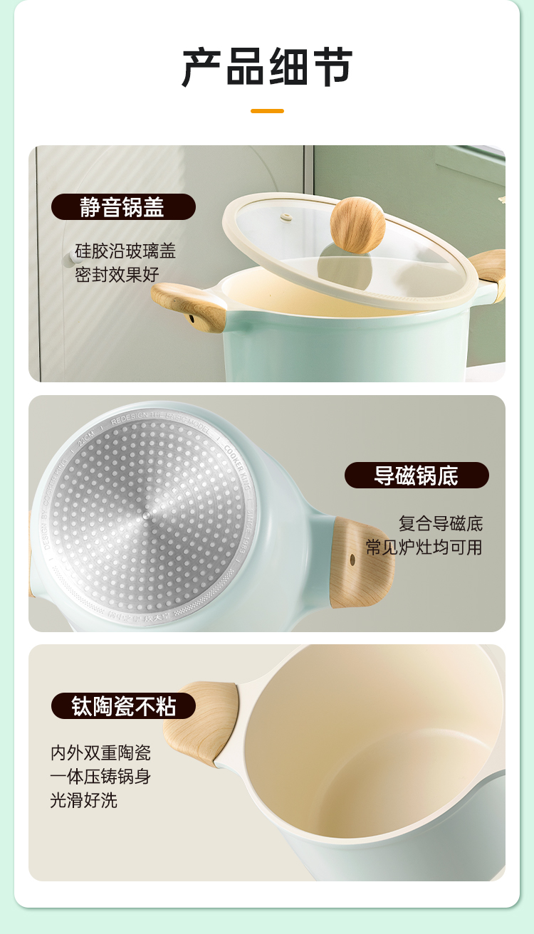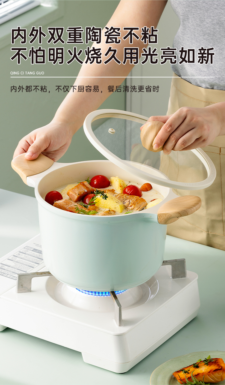 1、有钛陶瓷耐磨不粘健康兼具美观的汤锅,