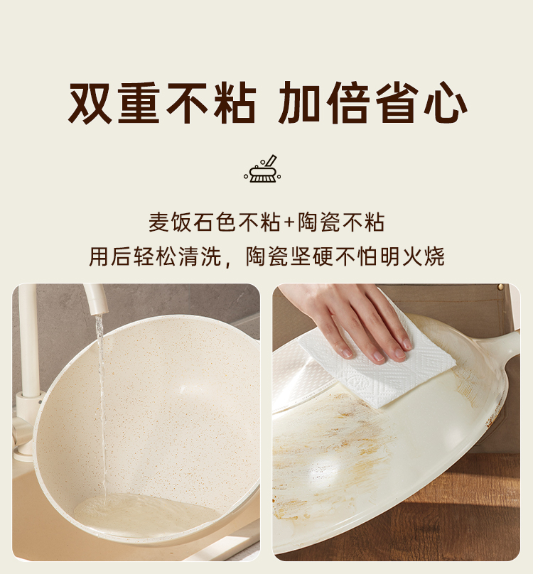 2、自带双导流口左右手自由切换一体压铸锅身,自带双导流口倒汤不易外洒,左右手任意操作
