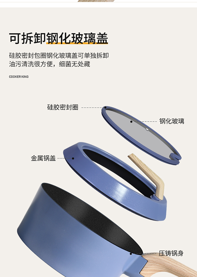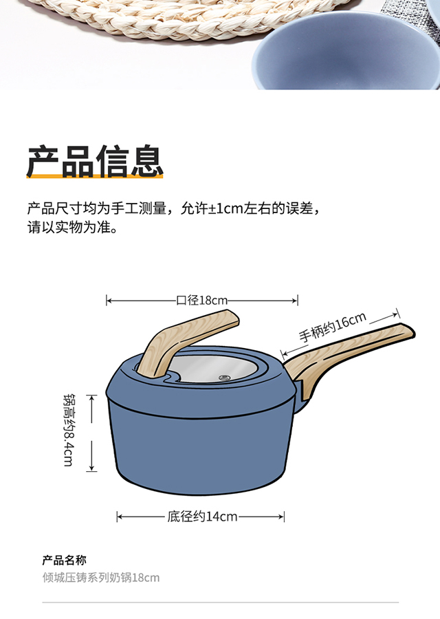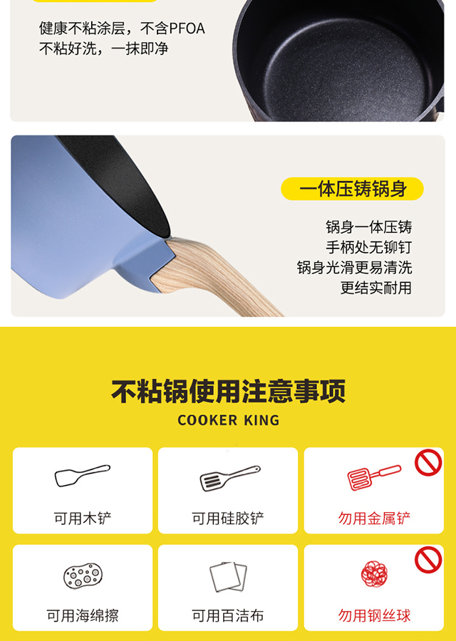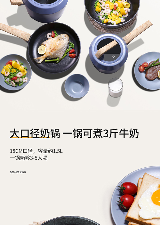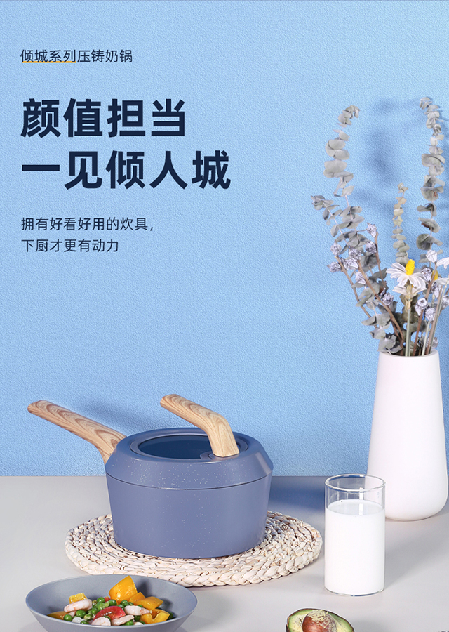 1.时尚奶锅食色煮义,独特造型,尽显高颜值,悦享烹饪时光,高雅雾霾蓝色外壁,美观时尚大方