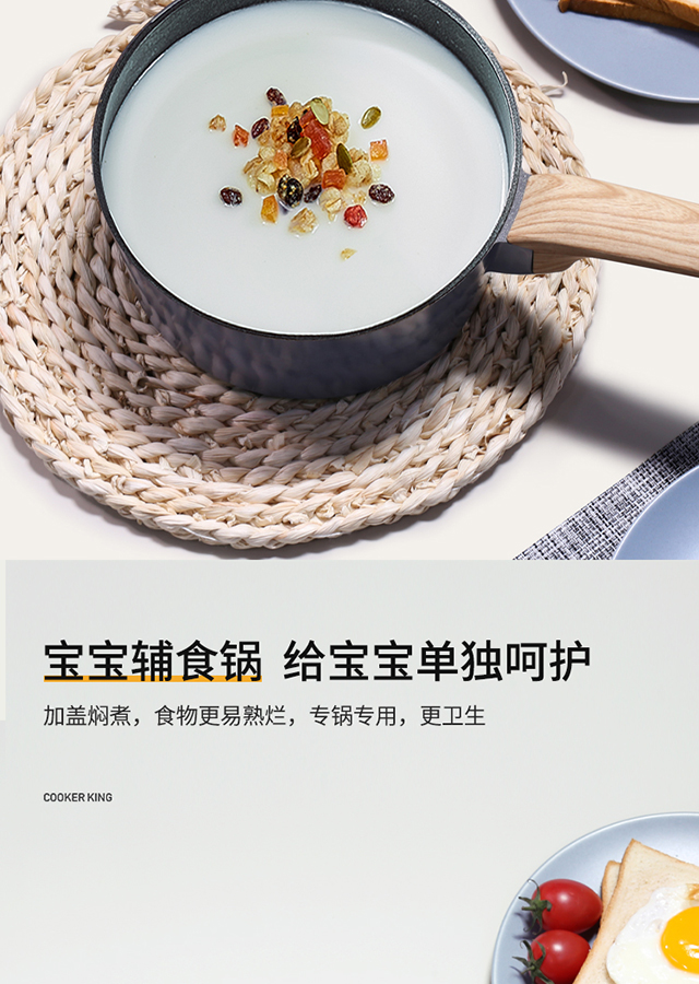 3.宝宝辅食锅给宝宝单独呵护,加盖焖煮,食物更易熟烂,专锅专用,更卫生