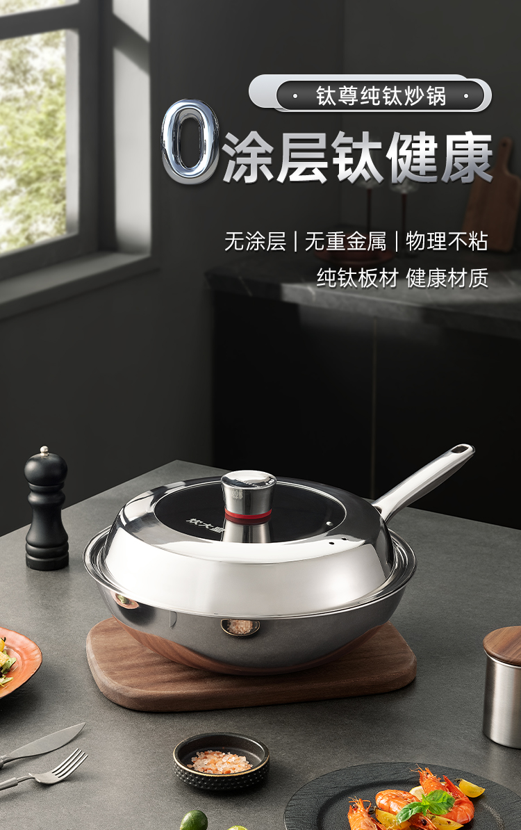 1、0涂层钛健康无重金属|物理不粘纯钛不粘更健康。