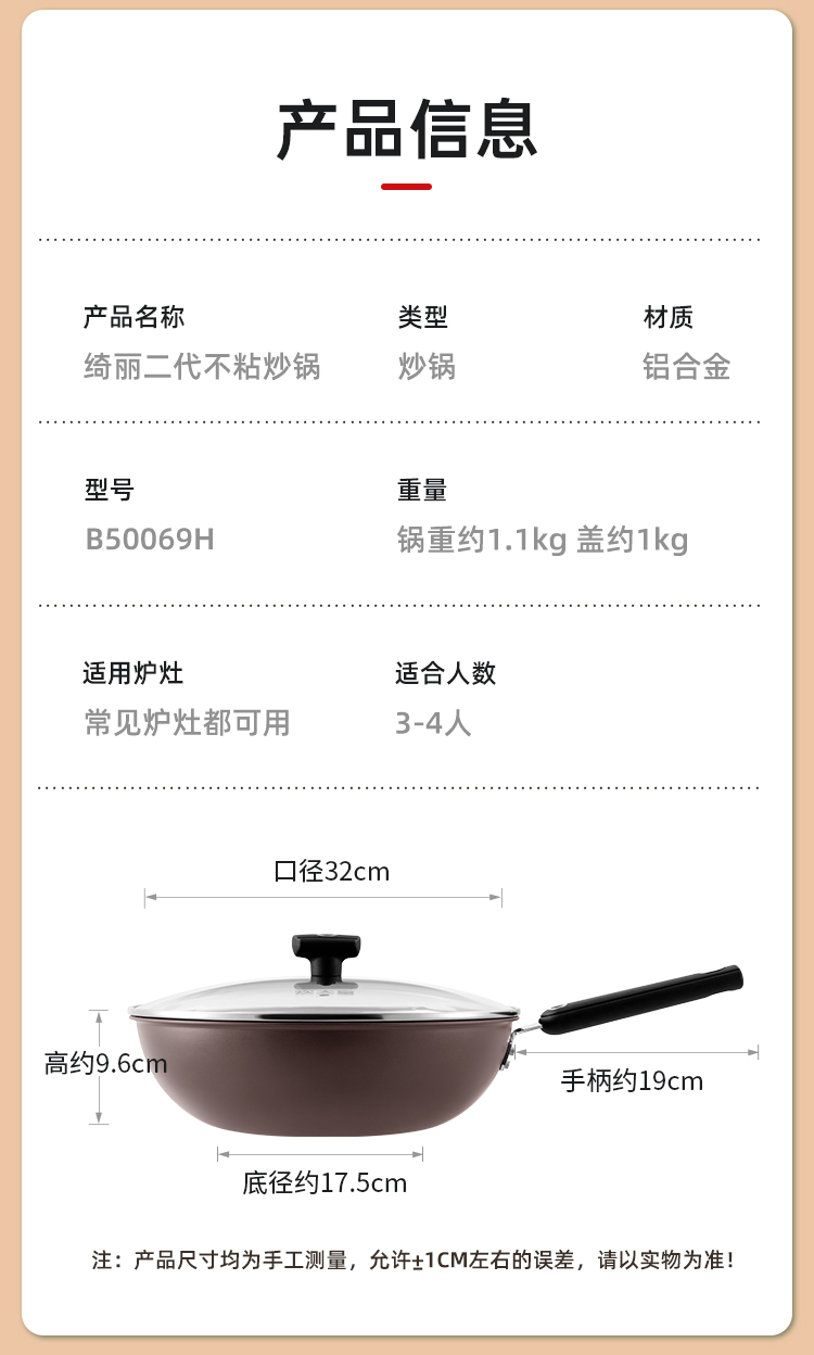 炊大皇绮丽二代不粘炒锅32cmB50069H