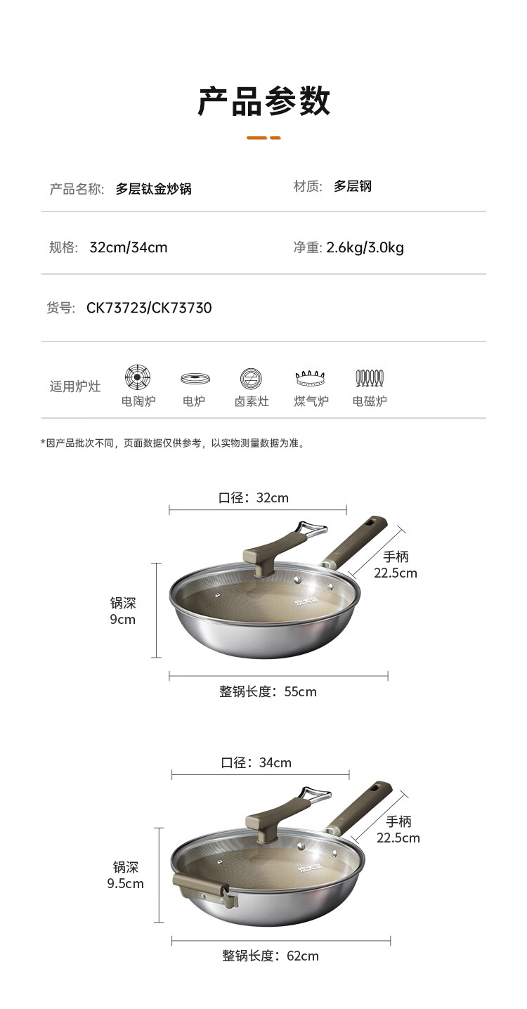 炊大皇多层钛金炒锅34CM