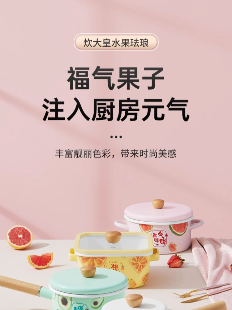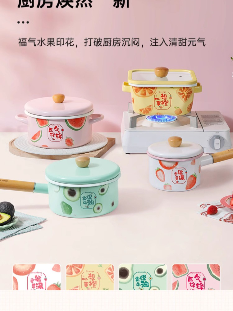 1、福气水果印花,打破厨房沉闷,注入清甜元气,日本进口珐琅釉,安全健康宝宝爱。