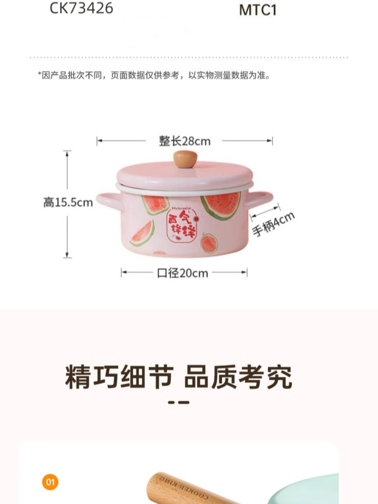 1、福气水果印花,打破厨房沉闷,注入清甜元气,日本进口珐琅釉,安全健康宝宝爱。