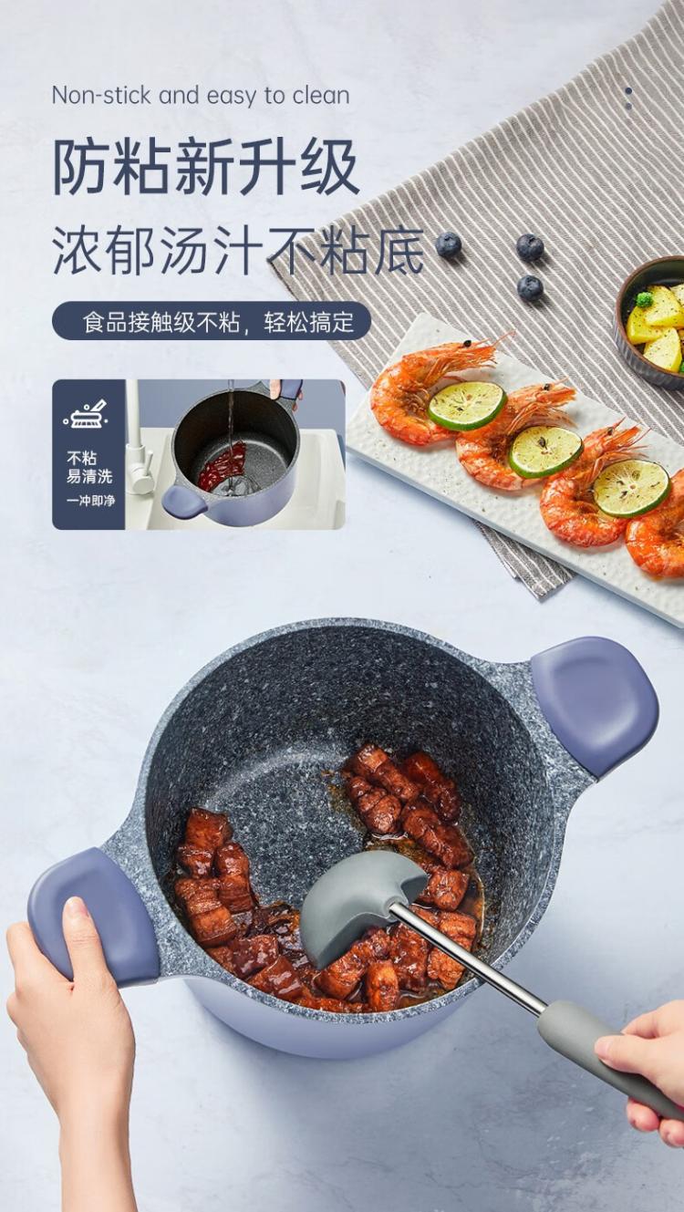 2.烹饪炒煎炖煮都不粘,匀热控油烟下厨清新更健康